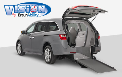 Vision Rear-Entry wheelchair and scooter accessible vans provide a range of choices for those customers who need the most economical solution for their transportation needs. The Vision Rear-Entry conversion is offered for all popular minivan models, including the Dodge Grand Caravan, Chrysler Town & Country, Toyota Sienna, and Honda Odyssey. Either new or used vans can be converted to become wheelchair or scooter accessible. And there are a range of options which provide different seating configurations and convenience features to meet every customer's need.